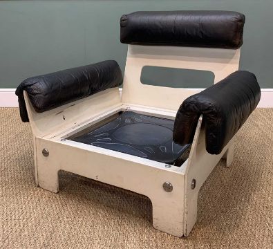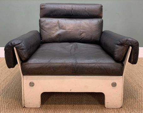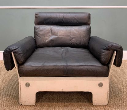 MID-CENTURY SIGURD RESELL FOR VATNE MOBLER LOUNGE CHAIR, circa 1968, painted wooden frame with chrome fixings, detachable leather cushions, Pirelli rubber seat support, 84 (h) x 104 (w) x 92cms (d)Provenance: private collection Mid-WalesComments: paint rubbed, upholstery popper fixings require attention, small crack to back panel near chrome fixing, leather upholstery in good condition