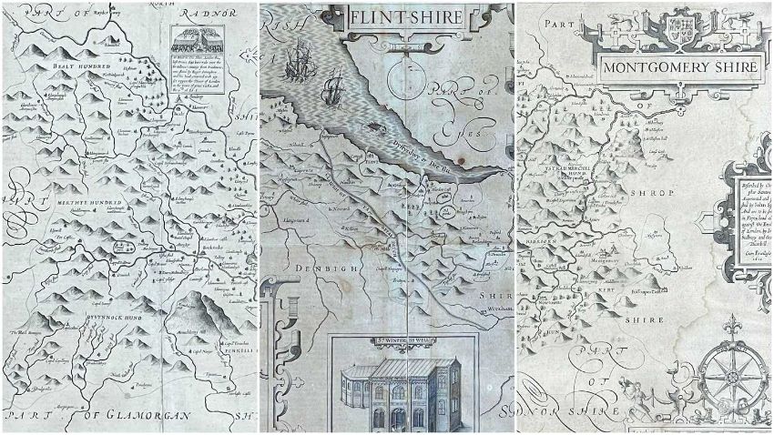 THREE ANTIQUE JOHN SPEEDE UNCOLOURED MAPS, 'Breknoke', 'Flintshire' and 'Montgomery Shire' (3)Provenance: private collection PembrokeshireComments: stains, wear, folds and creases, fading, viewing recommended