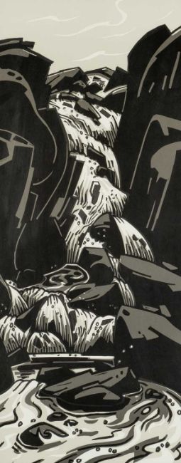 ‡ SIR KYFFIN WILLIAMS RA (Welsh 1918-2006) linocut - waterfall, 62 x 25cmsProvenance: private collection ConwyComments: frames and glazed