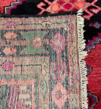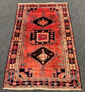 LURI RUG, three geometric medallions to a madder field, geometric border and guards, 225 x 145cmsProvenance: private collection SwanseaComments: some fading