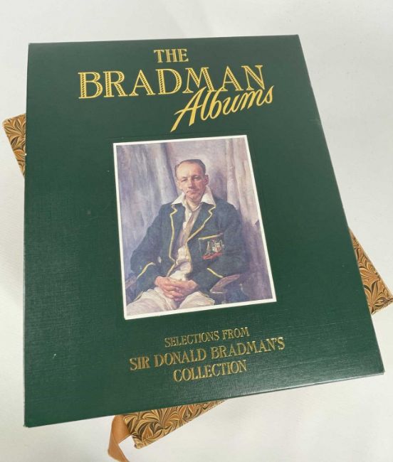 NATURAL HISTORY & CRICKET INTEREST: NEW YORK HISTORICAL SOCIETY. The Original Watercolour Paintings by John James Audubon for The Birds of America, two vols in slip case, published by Michael Joseph Ltd 1966, colour plates throughout (excellent, slip case bumped and rubbed at opening); and THE BRADMAN ALBUMS, Selections from Sir Donald Bradman's official collection, 1925-1934, and 1935-1949, gilt tooled cream cloth, two vols in slipcase, published by Queen Anne Press, London 1988 (4)Provenance: private collection Cardiff.