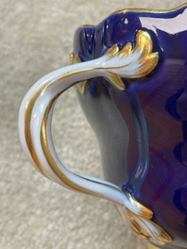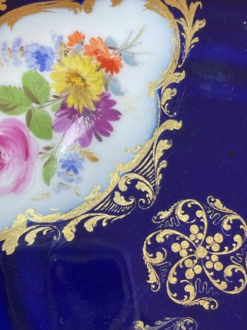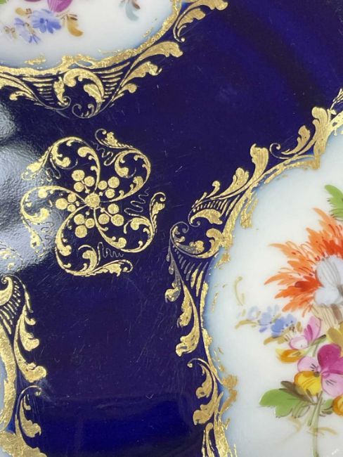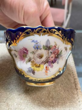MEISSEN PORCELAIN BREAKFAST CUP & SAUCER, of ogee-shape with cusped rim, painted with flowers reserved on mazarine blue ground, lavish gilt decorationProvenance: private collection CeredigionComments: slightly rubbed gilt