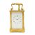 LATE 19TH C. GILT BRASS CARRIAGE CLOCK, retailed by Howell James, white enamel dial with black Roman numerals, minute track and steel moon hands, signed 'Howell and James To The Queen, London & Paris', platform lever escapement, five glass floral engraved gorge case with, 15.5cms (h) incl. swing handleProvenance: private collection Vale of GlamorganComments: good overall with gilding still fresh in the main, small chips to two bevelled glass margins/corners.