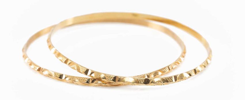PAIR OF YELLOW METAL CLOSED BANGLES, 16.8gms gross (2)Provenance: deceased estate Neath Port Talbot County BoroughComments: test as 18ct using a 'KEE' gold tester, please note these machines are not 100% accurate and buyers are required to satisfy themselves, wear overall, hallmarks rubbed, viewing recommended