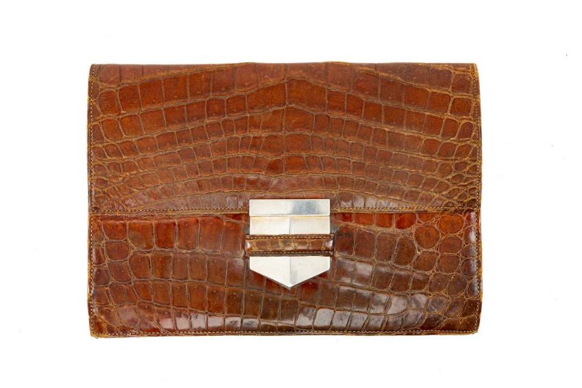 RARE VINTAGE HERMES CROCODILE PAN CLUTCH BAG having white metal clasp stamped Hermes Paris, marked again insideProvenance: private collection CarmarthenshireComments: wear commensurate with age, believed sterling silver, viewing recommended