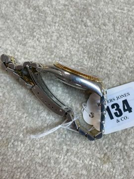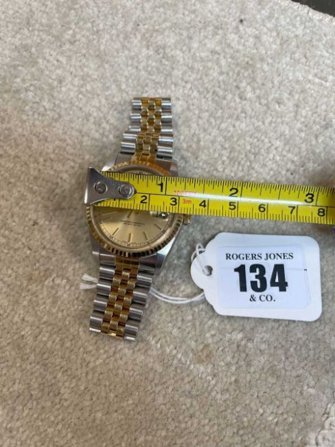 ROLEX OYSTER PERPETUAL DATEJUST BI-METAL WRISTWATCH, model ref. 16233, serial number Y46XXXX, circa 2002, the dial with hour baton markers, Roman numerals, minute track, date aperture at 3 o'clock, Jubilee bracelet numbered 62523, with original box and outer box, swing tag, information tag, date card, purchase receipt, guarantee and bookletsProvenance: private collection CarmarthenshireComments: ticking, not tested long term, light wear overall commensurate with age, scratches to outer box, viewing highly recommended Condition Report:watch dial 30mm