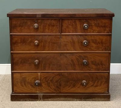 VICTORIAN MAHOGANY CHEST OF DRAWERS with turned knobs, 107 (h) x 122 (w) x 51cms (d)Provenance: private collection Gwynedd