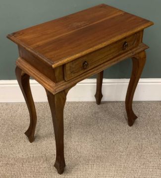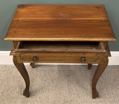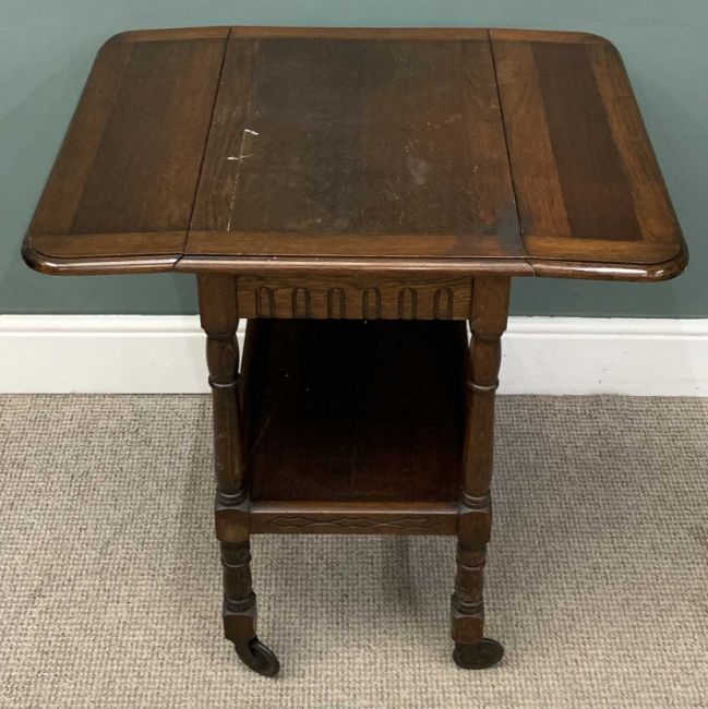 THREE SMALL FURNITURE ITEMS comprising drop leaf tea trolley, single drawer side table, 68 (h) x 60 (w) x 35cms (d) and small square topped, tripod based tilt top table (3)Provenance: deceased estate Anglesey