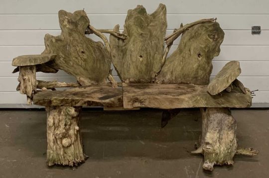 RUSTIC WOODEN BENCH, 93 (h) x 160 (w) x 54cms (d)Provenance: private collection Conwy