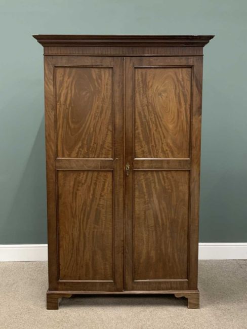 AN ANTIQUE MAHOGANY TWO DOOR WARDROBE on bracket feet, 198 (h) x 114 (w) x 58cms (d)Provenance: private collection Conwy