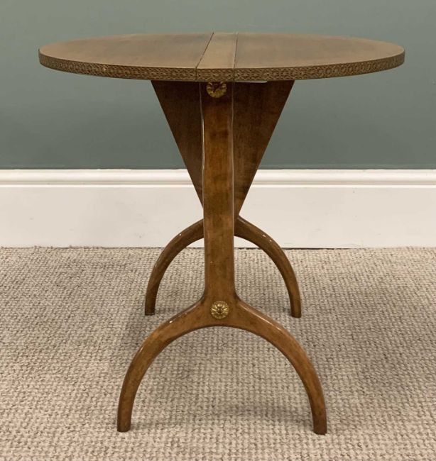 FINE QUALITY REPRODUCTION SUTHERLAND TYPE TABLE having metal banding to the edge and motifs to the support, 49 (h) x 49 (w) x 49cms (d)Provenance: deceased estate Conwy