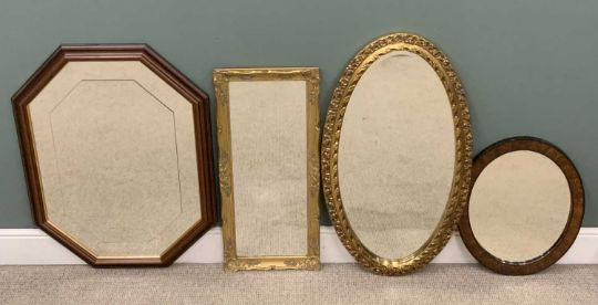 ORNATE GILT FRAMED WALL MIRROR having shaped top, 128 x 90cms and four other decorative wall mirrorsProvenance: deceased estate Conwy
