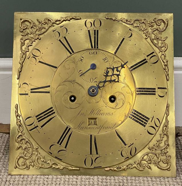 19TH CENTURY OAK LONGCASE CLOCK, by 'John Williams of Llansantffraid', with brass face, 8 day movement, weights and pendulum, 223 (h) x 55 (w) x 29cms (d)Provenance: private collection Conwy