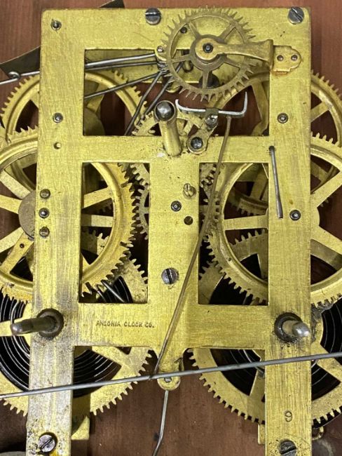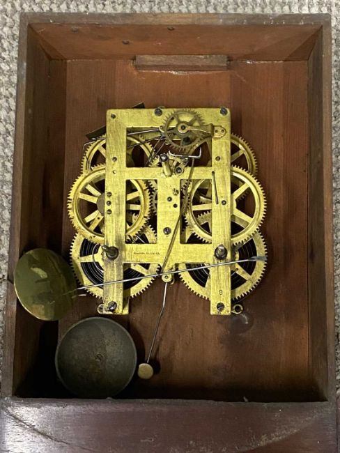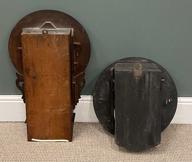 TWO WALL CLOCKS comprising chapel clock, single fusee with painted dial, and a pendulum driven Ansonia, 69cms (h) (2)Provenance: private collection Conwy