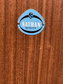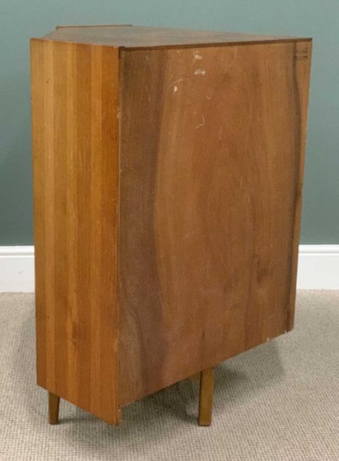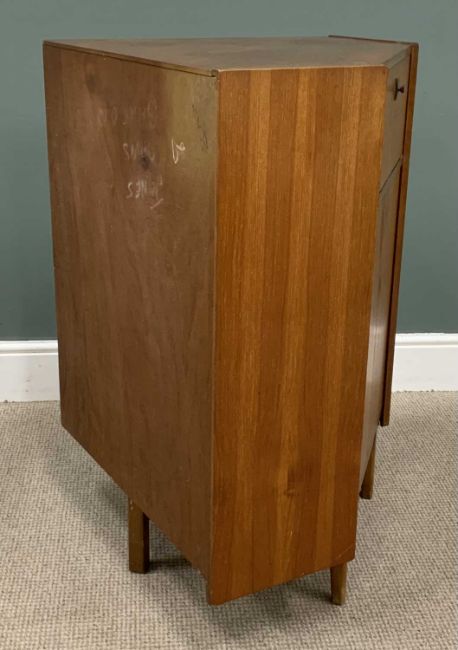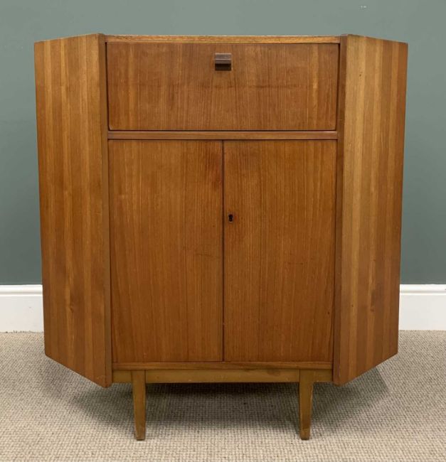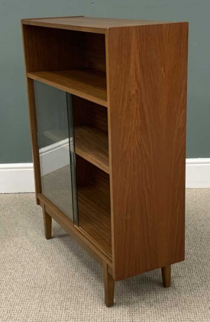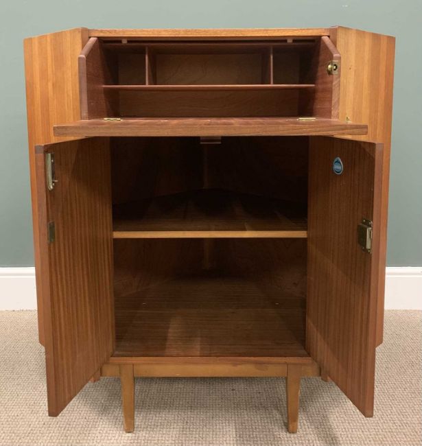 TWO ITEMS OF MID-CENTURY NATHAN TEAK comprising corner bureau 96 (h) x 94 (w) x 65cms (d) and similar bookcase with glass sliding doors, 96 (h) x 76 (w) x 28cms (d)Provenance: private collection Gwynedd