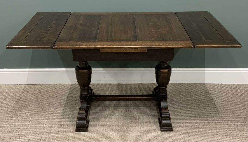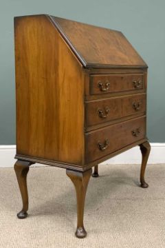 FURNITURE GROUP including draw-to-extend oak table, 76 (h) x 91/151 (w) x 83cms (d), similar era set of 6 linenfold back type chairs, and a walnut bureau, 101 (h) x 77 (w) x 41cms (d)Provenance: deceased estate Conwy