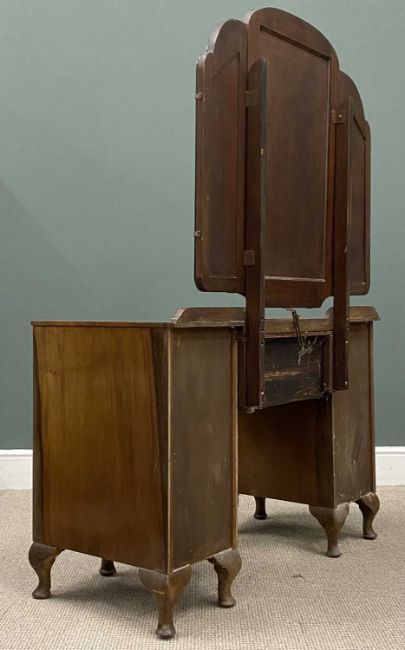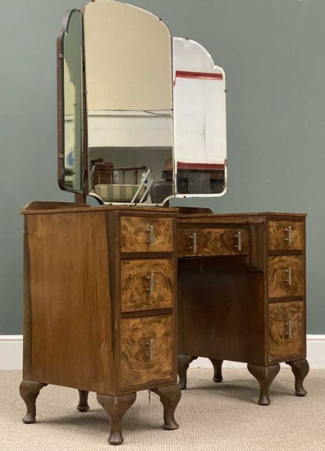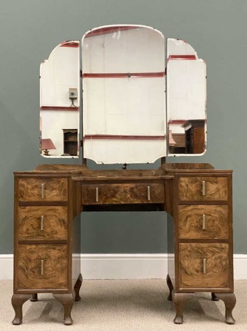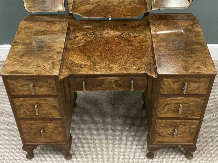 BURR WALNUT DRESSING TABLE with triple mirror, 159 (h) x 108 (w) x 52cms (d)Provenance: private collection Ynys Môn