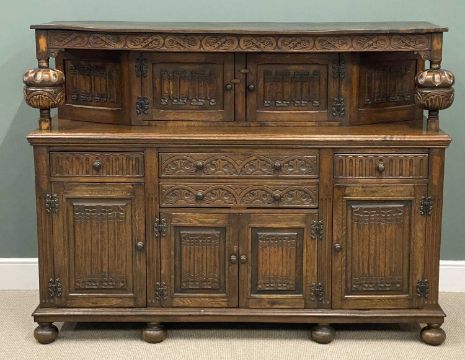 BUFFET SIDEBOARD, c. 1900, carved with linen fold detail and on bun feet, 140 (h) x 183 (w) x 58cms (d)Provenance: private collection Conwy