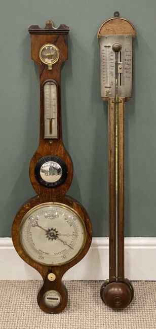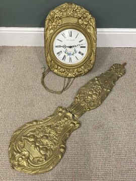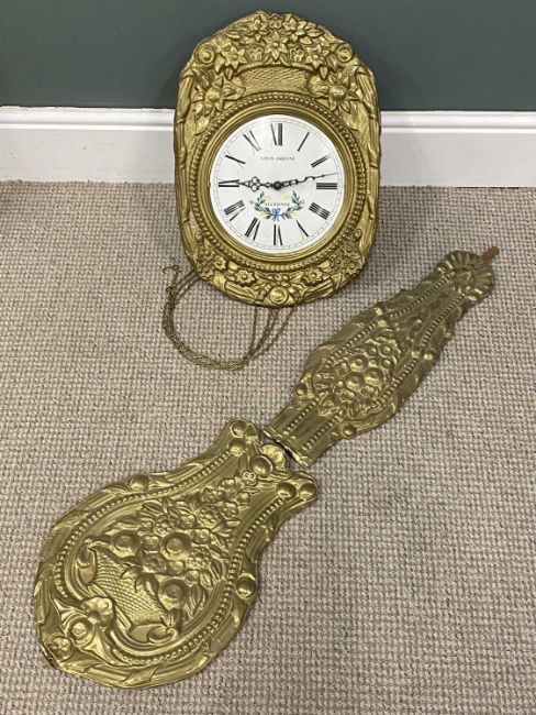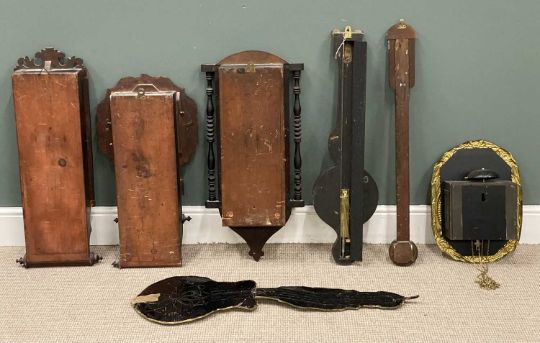 FOUR PENDULUM WALL CLOCKS, including French 'Louis Jaquine' brass effect, marquetry examples, and a stick barometer and banjo barometer (6)Provenance: private collection Conwy