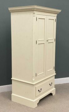 MODERN WHITE PAINTED TWO DOOR WARDROBE, with base drawer and dentil cornice, 202 (h) x 102 (w) x 67cms (d)Provenance: private collection Conwy