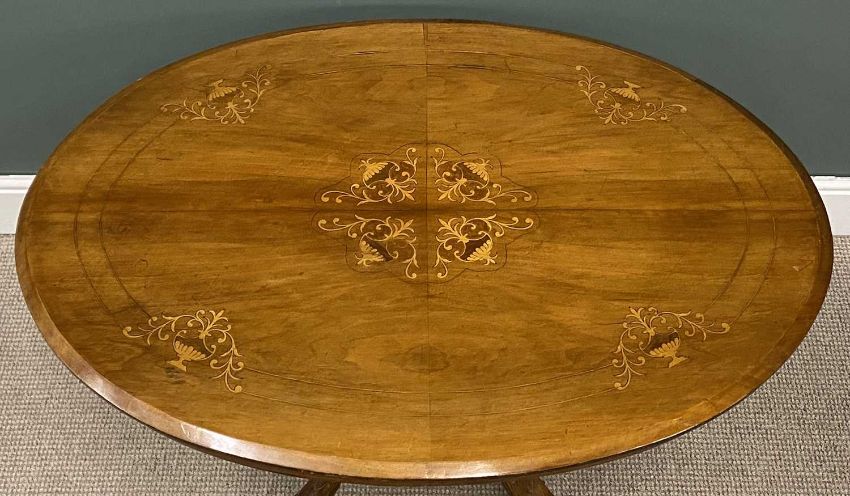 EDWARDIAN MAHOGANY INLAID OVAL TOP TEA TABLE, 70 (h) x 118 (w) x 85cms (d)Provenance: private collection Wirral