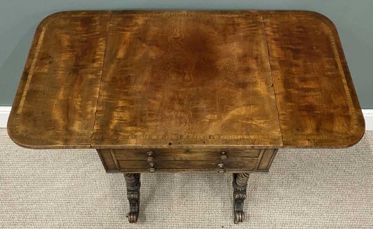 FINE VICTORIAN WALNUT WORKTABLE, two drawers, on turned and scrolled supports with stretcher, 78 (h) x 56/102 (w) x 55cms (d)Provenance: private collection Conwy