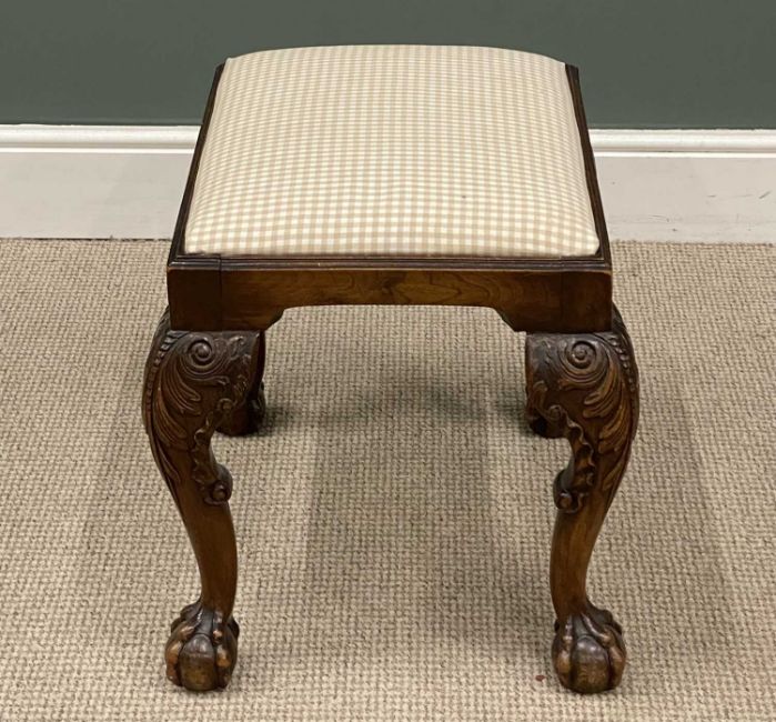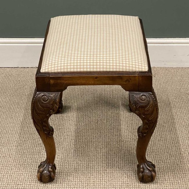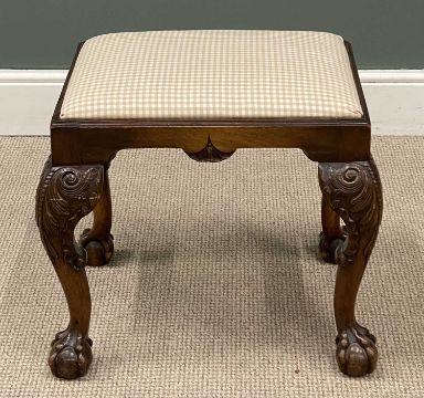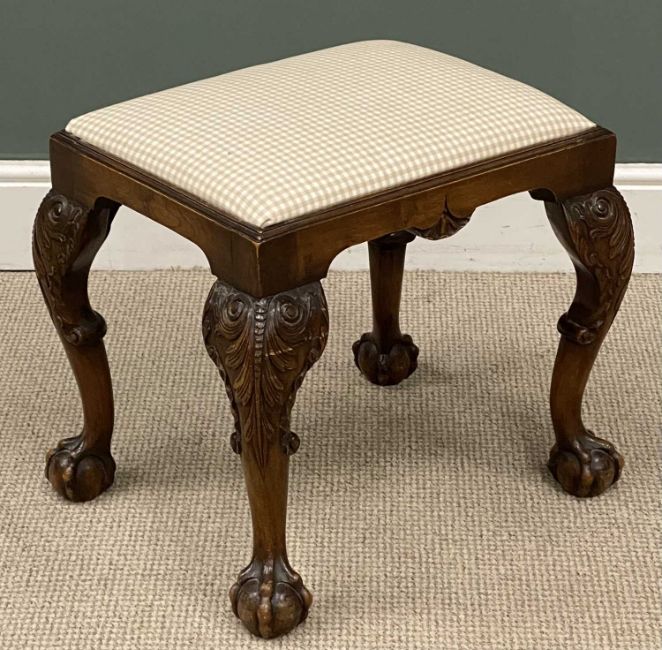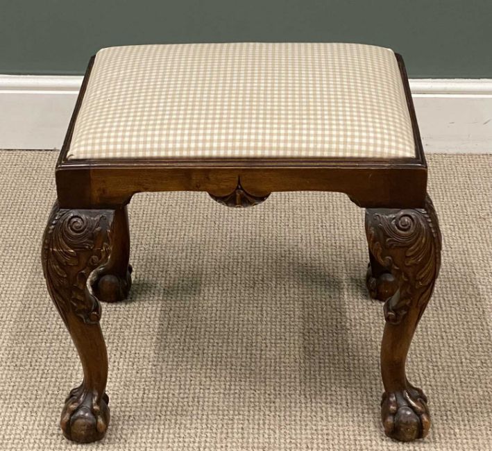 VICTORIAN CARVED MAHOGANY FOOTSTOOL on ball and claw feet, 50 (h) x 56 (w) x 46cms (d)Provenance: private collection Wirral