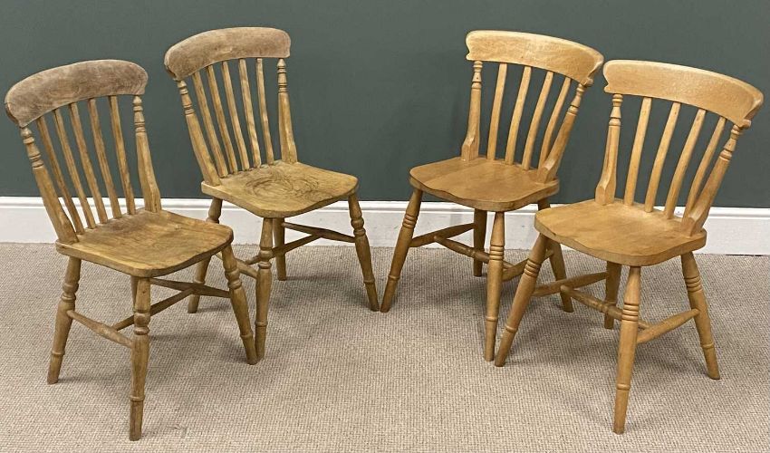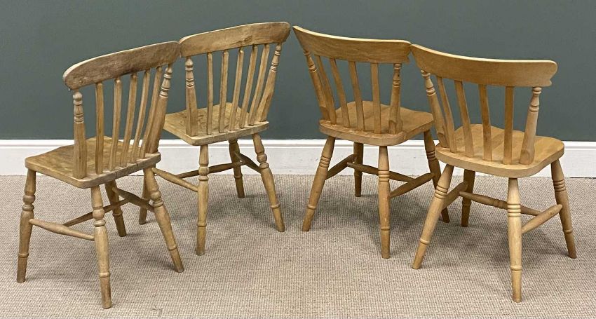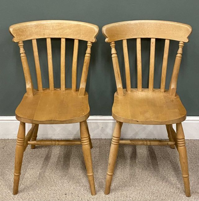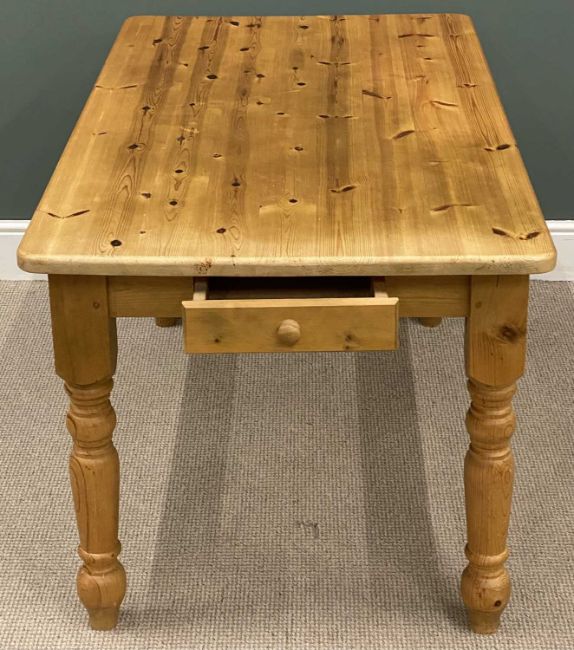 MODERN PINE KITCHEN TABLE, with end drawer, 77 (h) x 153 (w) x 84cms (d), and four antique pine spindle back chairsProvenance: private collection Conwy
