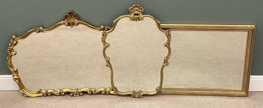 DECORATIVE GILT FRAMED MIRRORS, various sizes, including bevelled glass oblong, 72 x 102cms, shaped mirrors 94 x 64cms and 87 x 123cmsProvenance: private collection Conwy