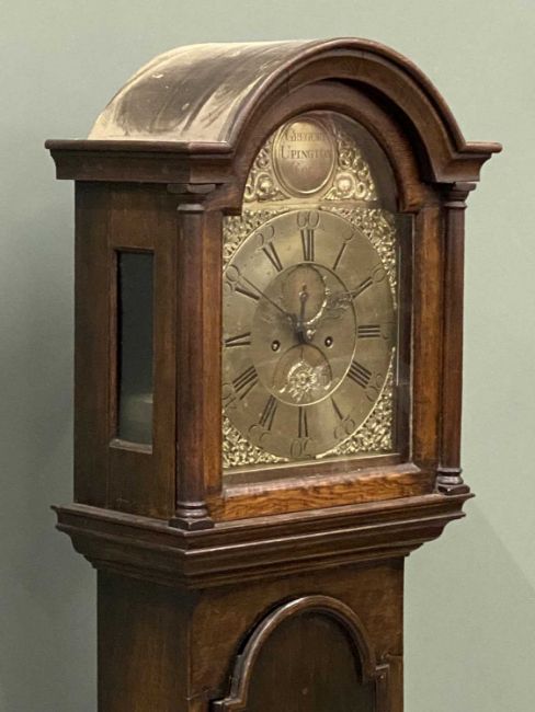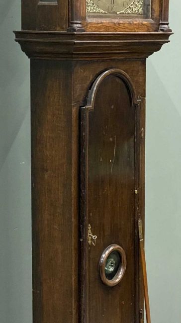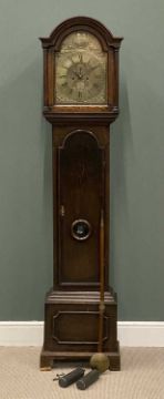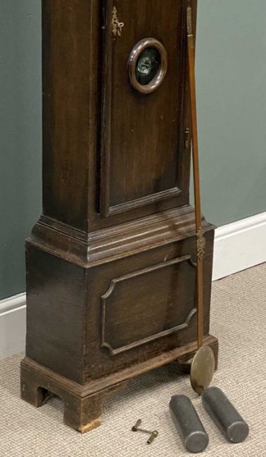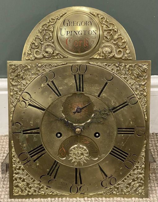 19TH CENTURY IRISH LONGCASE CLOCK, Gregory Upington, Cork, brass face with pendulum and weights, 212 (h) x 49 (w) x 26cms (d)Provenance: private collection Conwy