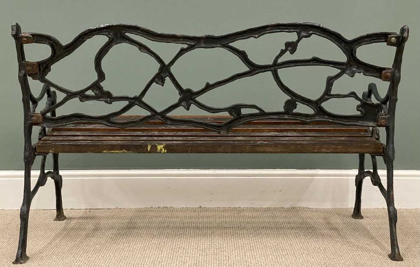 CAST IRON BENCH with wooden slats, in the manner of Coalbrookdale, 78 (h) x 126 (w) x 59cms (d)Provenance: private collection Conwy