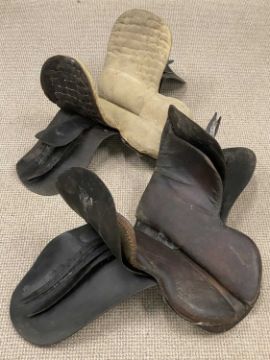 EQUESTRIAN TACK including two old leather saddles, riding boots, hats, etc.Provenance: deceased estate Flintshire