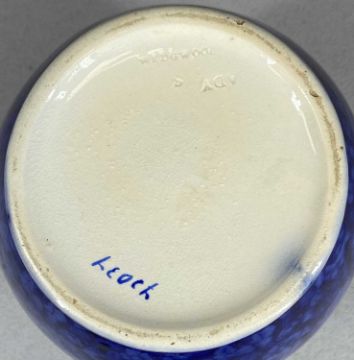 WEDGWOOD BLUE LUSTRE TWO-HANDLED AMPHORA VASE with gilded highlights, impressed marks, numbered 73037, 18.5cms (h) and two graduated Royal Doulton Booths 'Real Old Willow' pattern ginger jars and covers, 18cms (h) the tallestProvenance: private collection Conwy