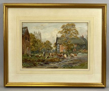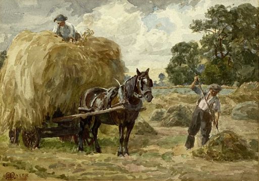 ‡ R. S. MAYER (British early 20th century) three watercolours - shire-horses and chickens in farmyard, signed and dated '25 lower right, 23 x 33cms; Haymaking, signed and dated '26 lower left, 18.5 x 26cms and Cattle and chickens in village, signed lower left, 23 x 32.5cmsProvenance: private collection ConwyComments: framed and glazed