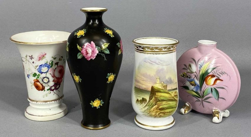 ASSORTED DECORATIVE BRITISH & CONTINENTAL CHINA, 19th century and later including porcelain vase, panels painted with floral sprays, Cauldron floral jug and vase, Welsh lustre dish etcProvenance: private collection Conwy