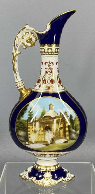 ROYAL CROWN DERBY PORCELAIN LIMITED EDITION (233/250) CHATSWORTH VASE with single handle and painted with views of the West Front and Cascade, signed 'R. Boulton', printed marks to base, commissioned by The Guild of Specialist China & Glass Retailers, 26cms (h), boxed with certificateProvenance: private collection Conwy
