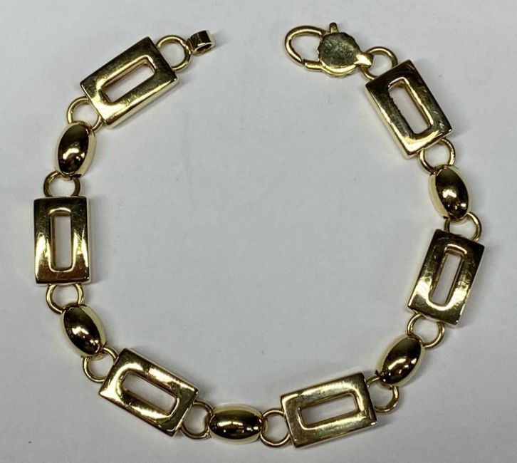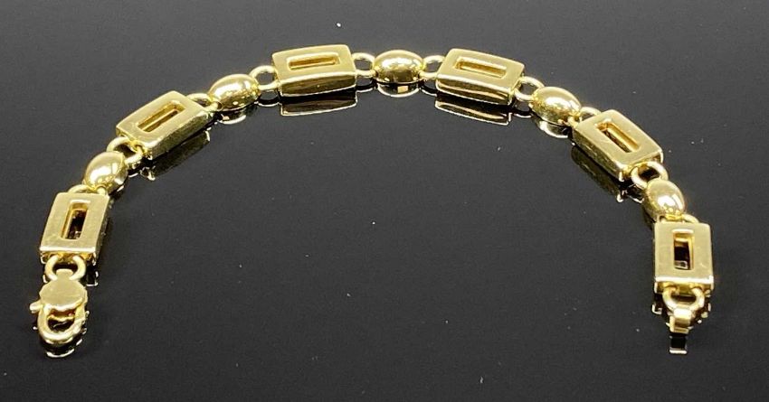 YELLOW METAL BRICK LINK BRACELET, stamped 750, 18.5mms (l), 17.8gmsProvenance: deceased estate Conwy