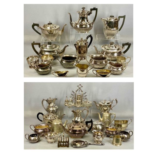 VARIOUS ASSORTED PLATED ITEMS including tea sets, cruet frame, etc.Provenance: private collection Wirral