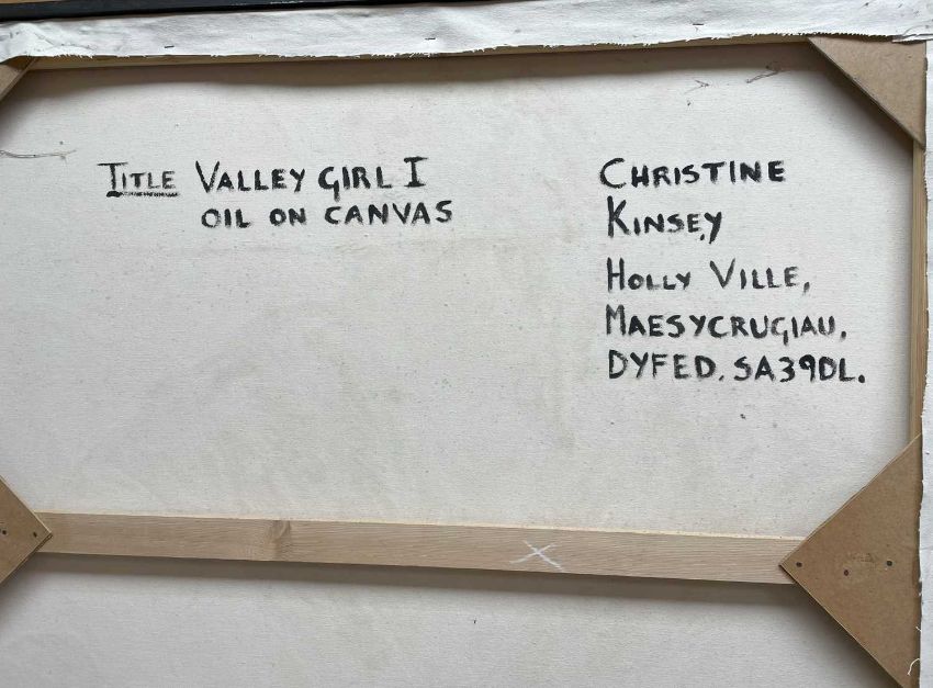 ‡ CHRISTINE KINSEY (Welsh b.1942) large oil on canvas - entitled verso, 'Valley Girl I / Merched y Cwm I', signed, 183 x 122cmsProvenance: private collection LondonComments: framed