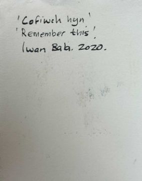 ‡ IWAN BALA (Welsh b.1956) mixed media - inscribed 'Pair Ein Dadeni / Cauldron of Our Re-birth' and entitled verso, 'Cofiwch Hyn / Remember This', signed and dated 2020, 78 x 57cmsProvenance: private collection South WalesComments: framed, glazed, ready to hang