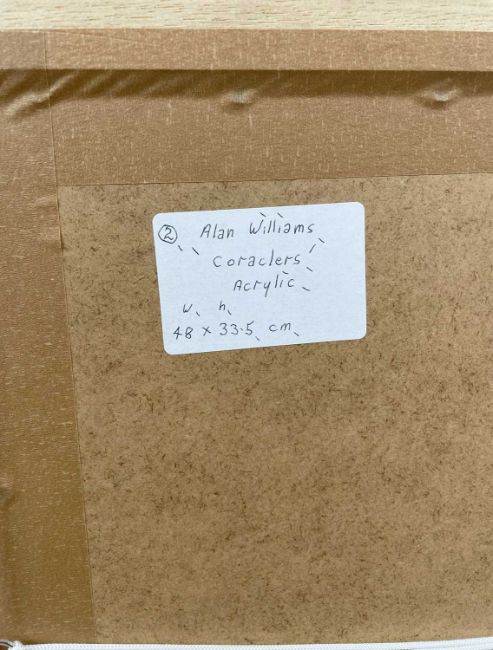 ALAN WILLIAMS acrylic - entitled verso 'Coraclers', signed, 33 x 48cmsProvenance: private collection Cardiff, directly from artist's studio, no droit de suite appliedComments: framed and glazed