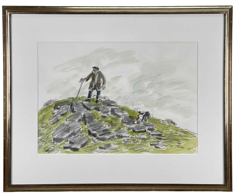 ‡ SIR KYFFIN WILLIAMS RA (1918-2006) large mixed media - entitled verso 'Farmer on a Hill' on Albany Gallery label, signed with initials, 41 x 58cmsProvenance: private collection CeredigionComments: framed and glazedFree Delivery: bidders with invoices over £4000 in this Welsh Sale can benefit from free insured delivery to their home (England and Wales only). To enquire about this service, please email brj@rjauctions.co.uk