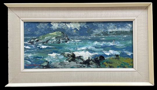 ‡ CHARLES WYATT WARREN (Welsh 1908-1993) oil on board - entitled verso 'Puffin Island', signed, 23 x 54cmsProvenance: private collection CheshireComments: missing a section of frame