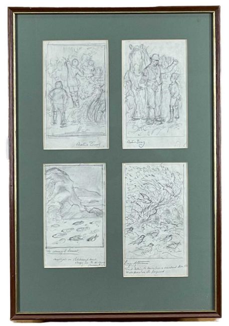 ‡ CHARLES FREDERICK TUNNICLIFFE OBE RA (English, worked Wales 1901-1979) set of four pencil on paper sketches framed together - entitled, 'The Coming of Summer', 'Days of Autumn' and two others entitled, 'Nature Diary', 11 x 20cms eachProvenance: private collection GwyneddComments: framed and glazed