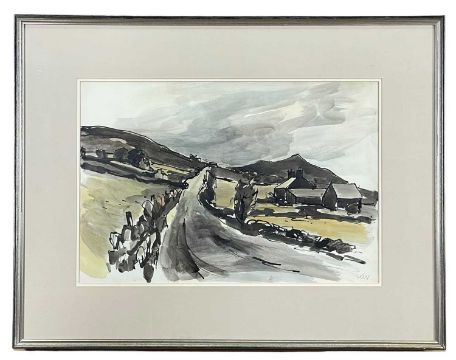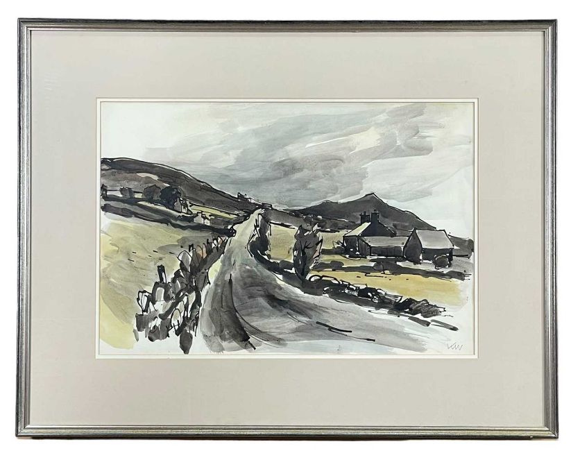 ‡ SIR KYFFIN WILLIAMS RA (Welsh 1918-2006) ink wash and watercolour - entitled verso, 'Road Above Deiniolen', signed with initials, dated verso 1992, 37 x 55cmsProvenance: private collection CardiffComments: framed and glazedFree Delivery: bidders with invoices over £4000 in this Welsh Sale can benefit from free insured delivery to their home (England and Wales only). To enquire about this service, please email brj@rjauctions.co.uk