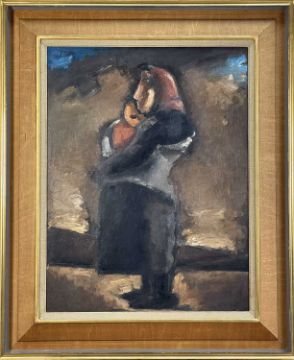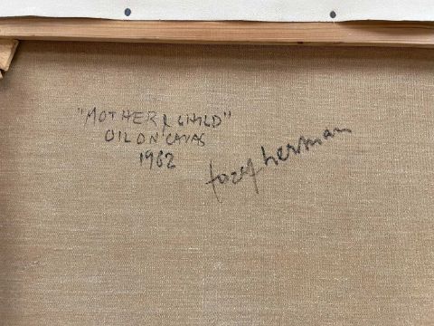 ‡ JOSEF HERMAN OBE RA (Polish, lived Wales 1911-2000) oil on canvas - entitled verso, 'Mother and Child', signed and dated verso 1962, 65 x 49.5cmsProvenance: private collection LondonComments: framed, glazedFree Delivery: bidders with invoices over £4000 in this Welsh Sale can benefit from free insured delivery to their home (England and Wales only). To enquire about this service, please email brj@rjauctions.co.uk