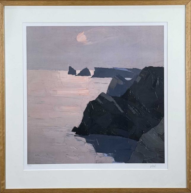 ‡ SIR KYFFIN WILLIAMS RA (Welsh 1918-2006) limited edition (66/150) print - the Gower coast at sunset, signed with initials, 61 x 60cmsProvenance: private collection ConwyComments: framed and glazed