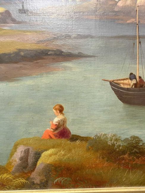 WILLIAM GILLARD (British 1812 - 1897) large oil on canvas - Menai Straits with figure and Telford's Menai Suspension Bridge, signed, 64 x 110cmsProvenance: private collection LondonComments: framed Condition Report:damage to one corner of the frame