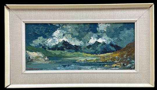 ‡ CHARLES WYATT WARREN (Welsh 1908-1993) oil on board - entitled verso 'Snowdon from Llynmymbyr', signed, 24 x 54cmsProvenance: private collection CheshireComments: damaged frame