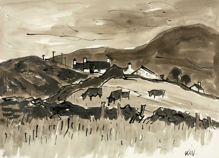 ‡ SIR KYFFIN WILLIAMS RA (Welsh 1918-2006) ink wash - entitled verso, 'Above Waunfawr', signed with initials, dated verso 1992, 36 x 49cmsProvenance: private collection CardiffComments: framed and glazedFree Delivery: bidders with invoices over £4000 in this Welsh Sale can benefit from free insured delivery to their home (England and Wales only). To enquire about this service, please email brj@rjauctions.co.uk